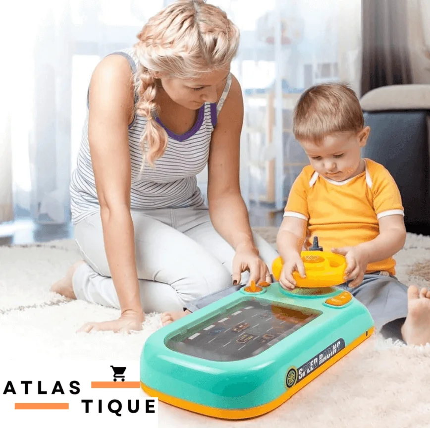 توفر اللعبة محاكاة ممتعة لقيادة السيارة، حيث يمكن للأطفال تحريك عجلة القيادة يمينًا ويسارًا لتجنب السيارات الأخرى، مع مجموعة من الأصوات الواقعية مثل أصوات المحرك، القرن، والسيارات المختلفة. هذه التجربة تجعل طفلك يشعر وكأنه يقود سيارة حقيقية في عالم مليء بالإثارة.