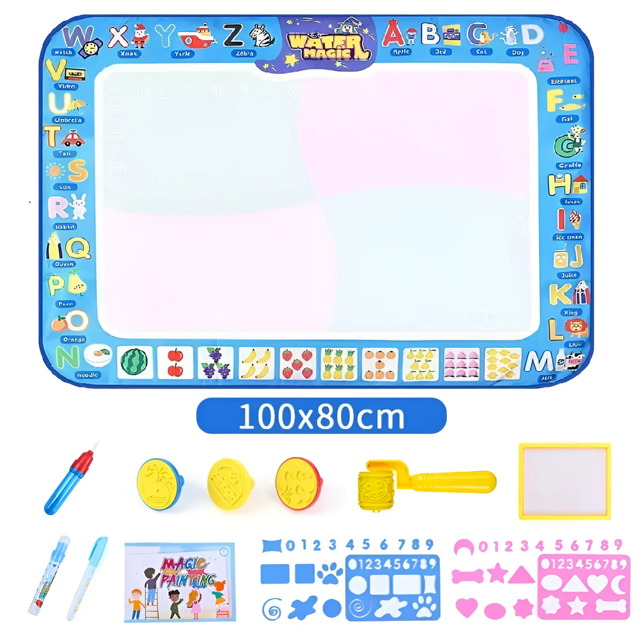 اتفق الباحثون على أن التعلم من خلال اللعب هو مفتاح النمو الصحي للطفل. يمكن لبساط الرسم المائي السحري أن يلهم الإبداع والخيال لدى أطفالك من خلال قوالب مختلفة. سيساعد الرسم على ممارسة التنسيق بين اليد والعين والقدرة على إدراك الألوان